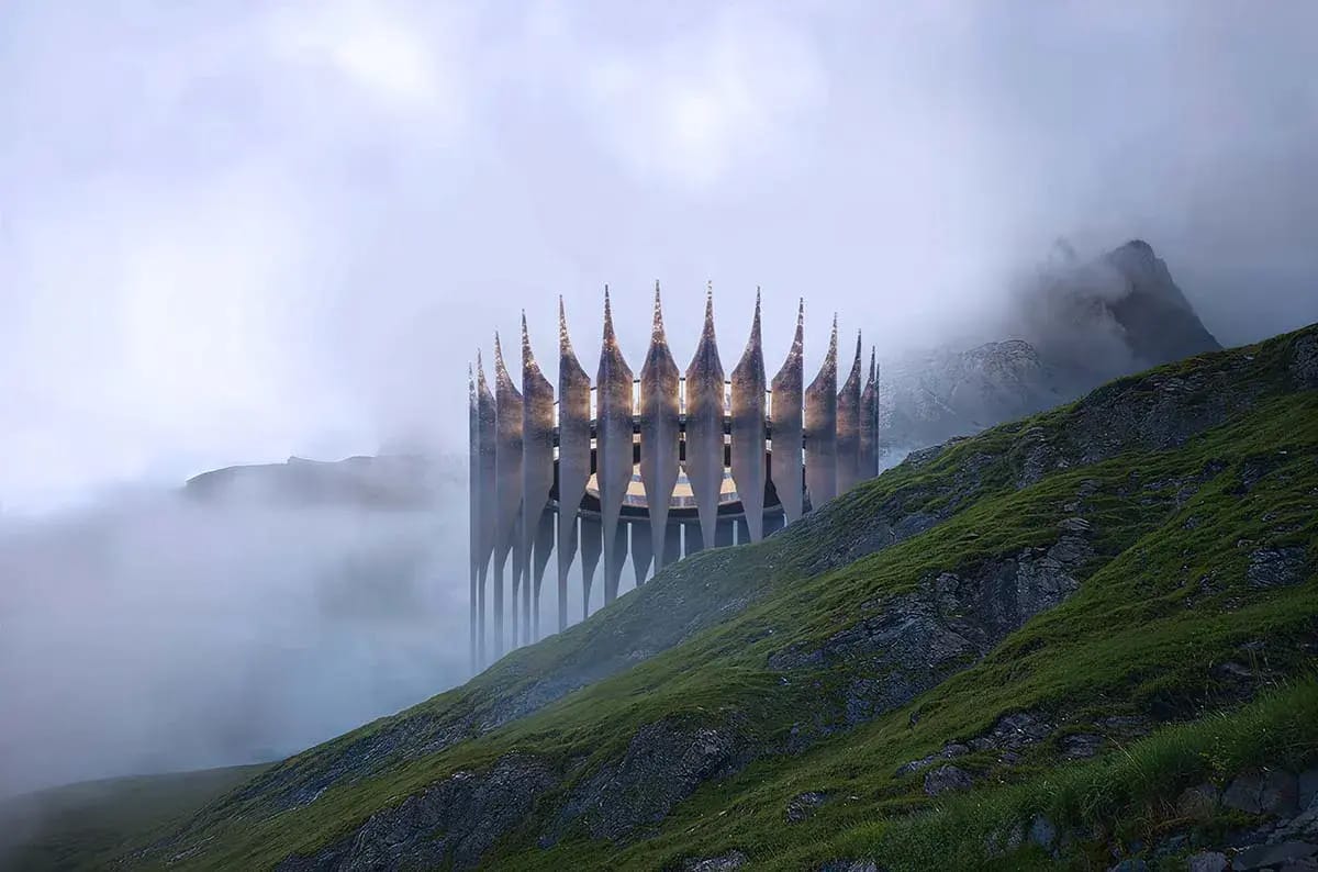 A Gothic Futurist Drone Station Designed for Mountain Rescue
